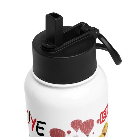 Botella de acero inoxidable con tapa de pajita con tu nombre y Turquia