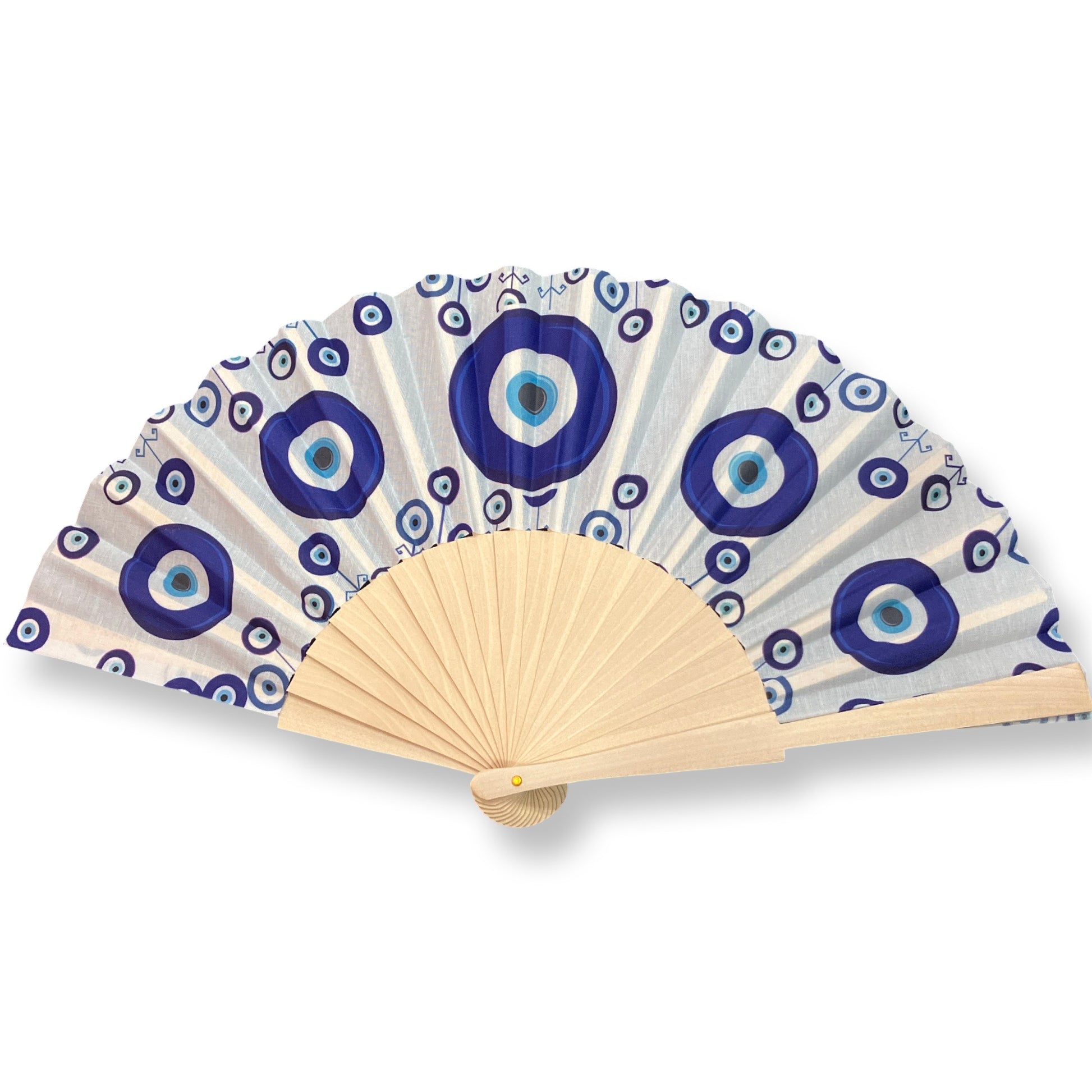 Abanico de tela y madera con ojo turco