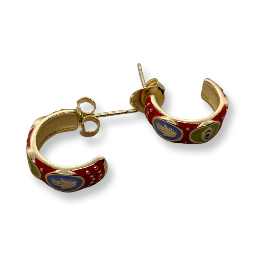 Pendientes de Plata con baño de oro Hamsa y Nazar