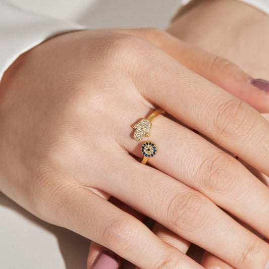 EsgotadoAnillo de Plata Nazar Hamsa Oro