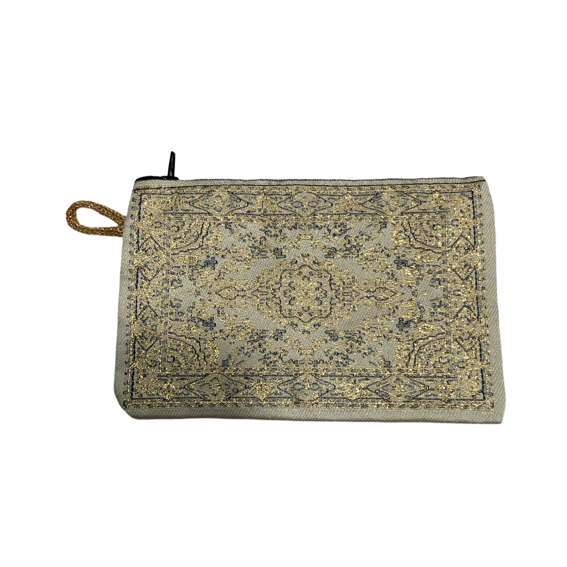 Material: Tela con hilos de colores tejidos creando el dibujo con inspiración en las alfombras turcas.